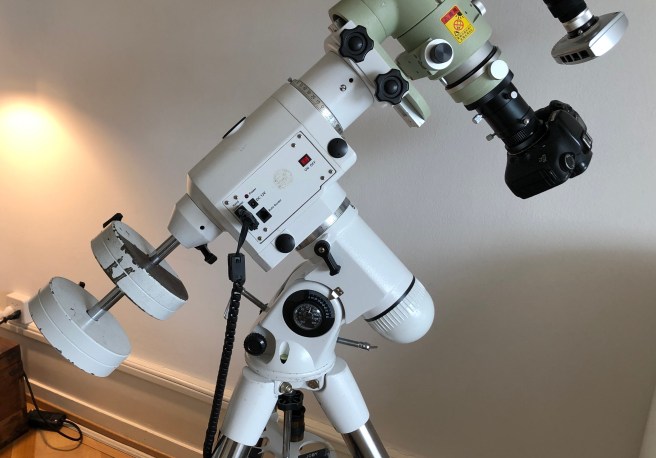 My workhorse was the Skywatcher NEQ6-Pro rated for a 20kg load. It carries max 10kg, usually 5 or 6. It should be balanced properly – with all breaks loose, gravity should induce no movement in any of the axis.