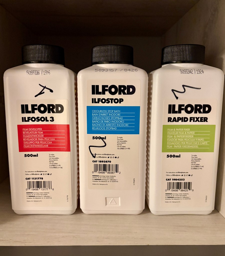 The developer, stopper and fixer need to be procured separately, as are the graduated containers, the thermometer, the distilled water and maybe the wetting agent (isopropyl alcohol).