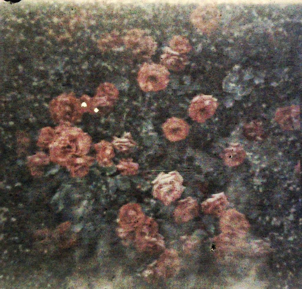 This film uses starch to create a RGB mask: individual starch grains are collected from potatoes, then dyed in red, green and blue, and scattered on the surface of the film. Precisely like the RGB matrix that is applied in fromt of the digital sensor of modern cameras.