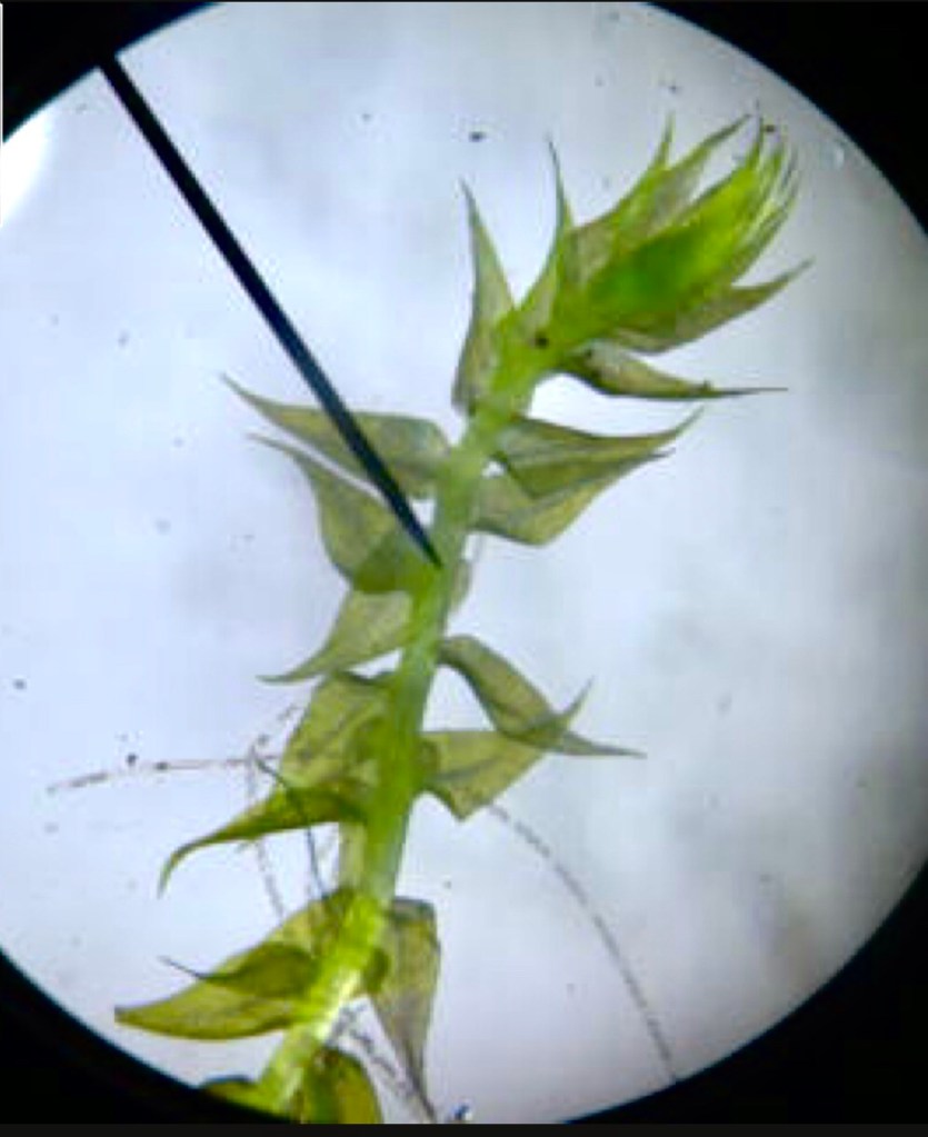 Something interesting I found – what appear to be parasitic algae (maybe some form of symbiosis?) growing on the leaves of the water plant. The algae are tubular, straight with no ramifications and contain chloroplasts.
