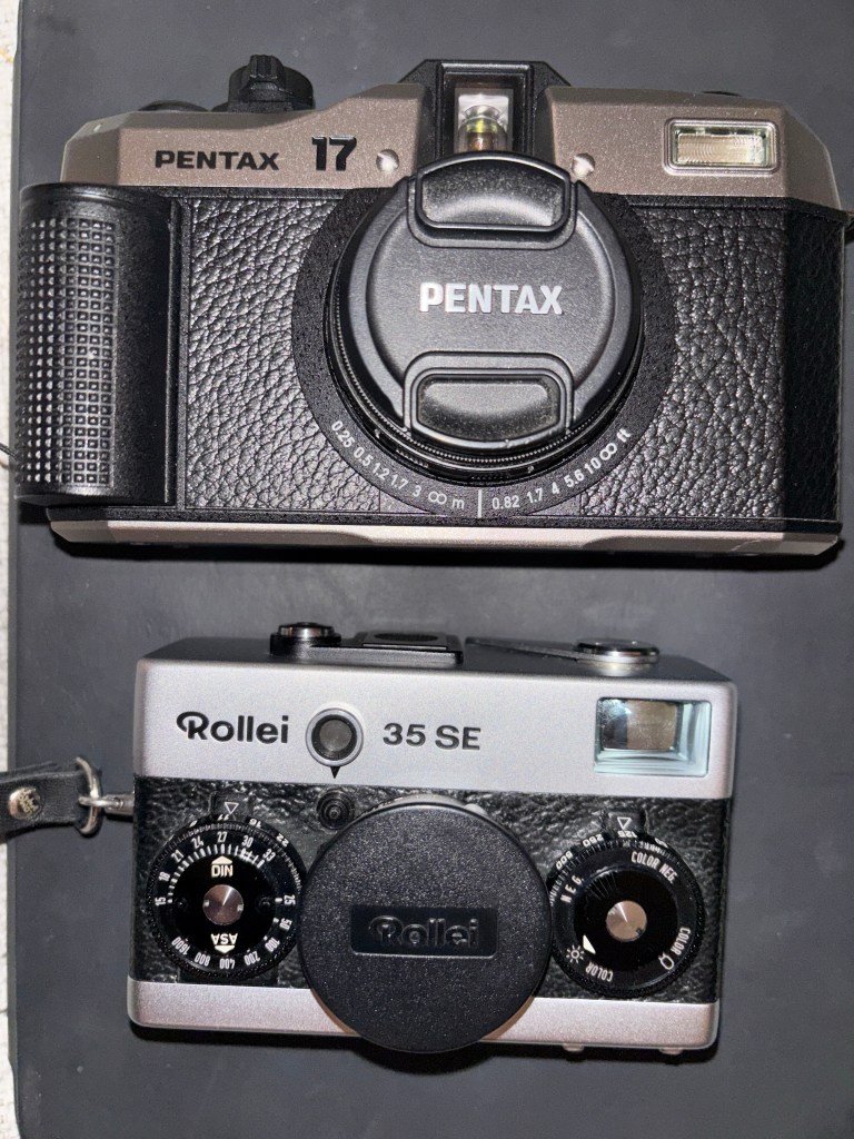 The same shot taken with the Pentax 17 and the Washi Z 400 and with the Rollei 35 SE and the Fuji Neopan Acros II 100.