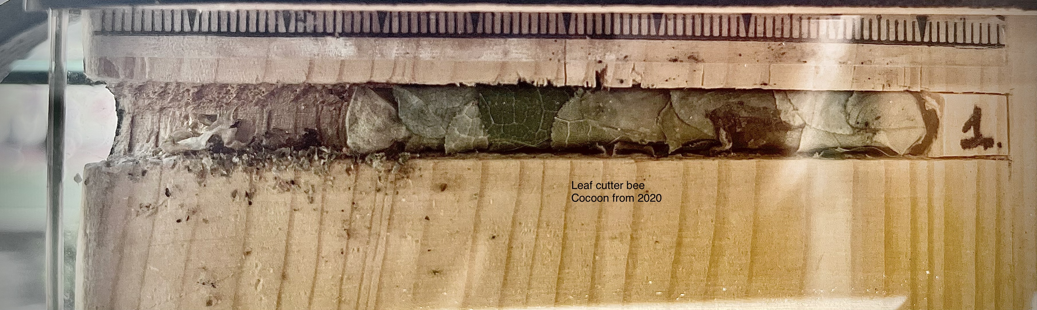 Females are about half the size of males and the smaller cocoons are always closest to the entrance, as females hatch first. The larger cocoons are the males that hatch last. A dead female near the front can mean the dearth of all cocoons, as sometimes the newly hatched bee does not have the strength to chew through several separations.