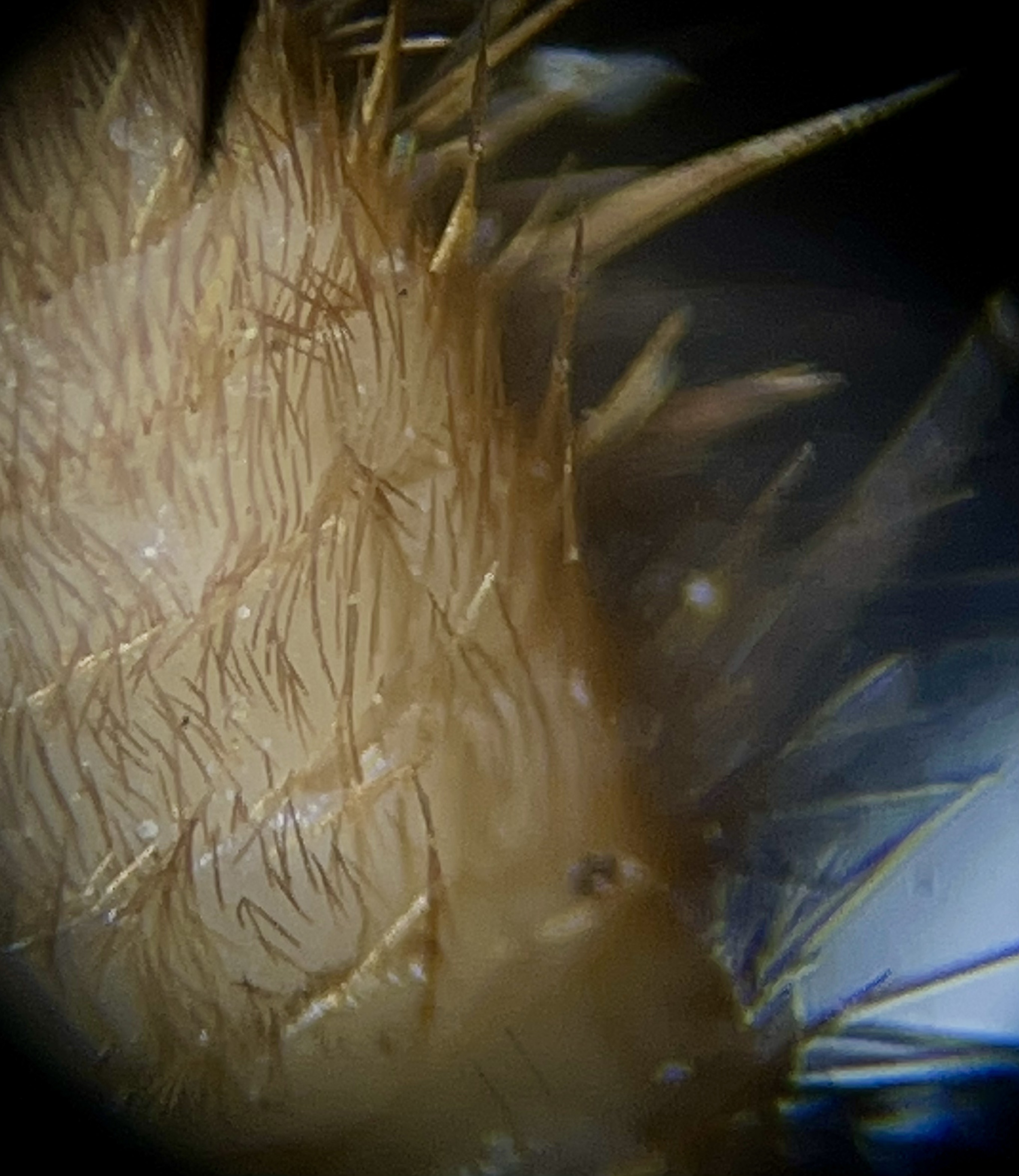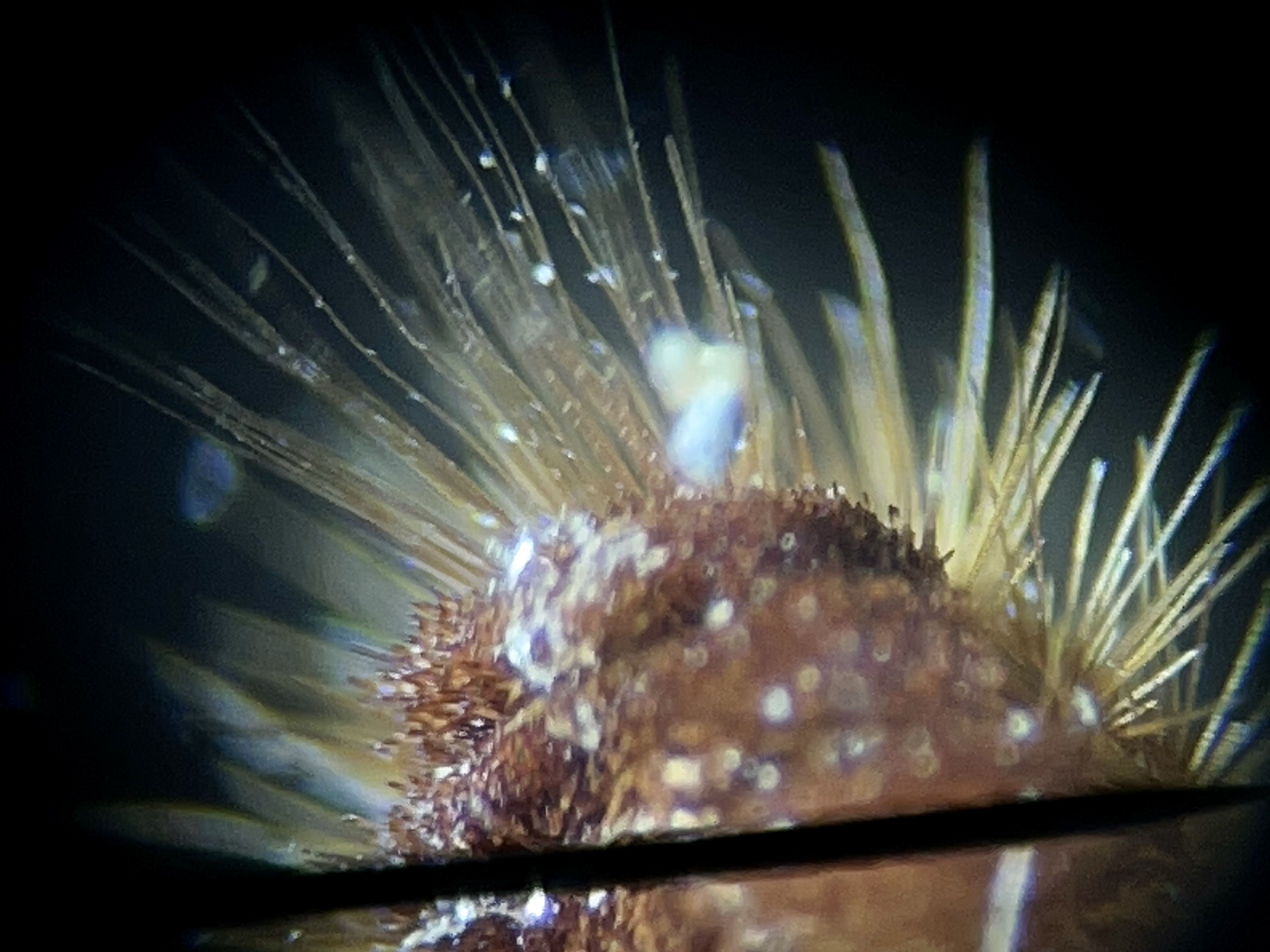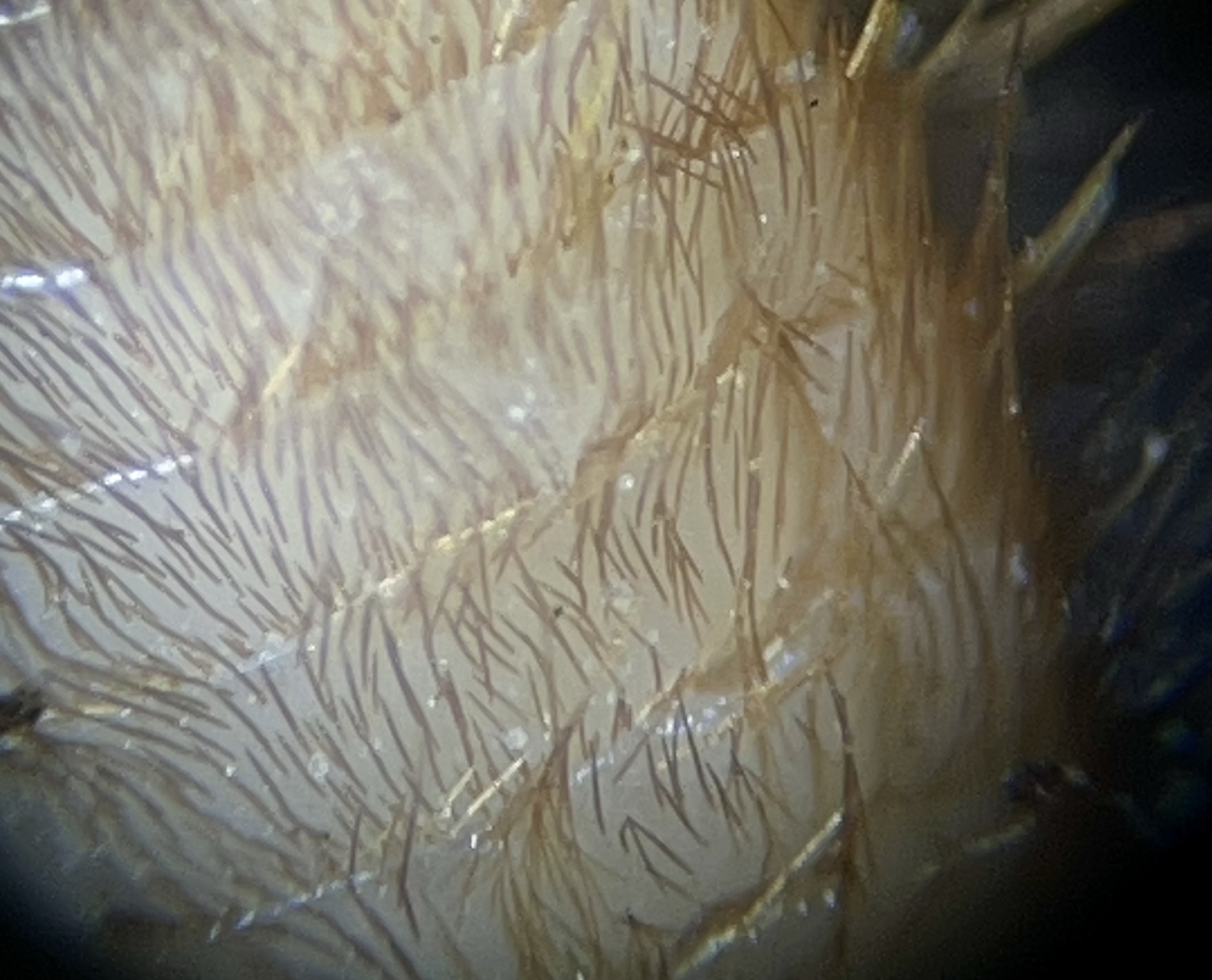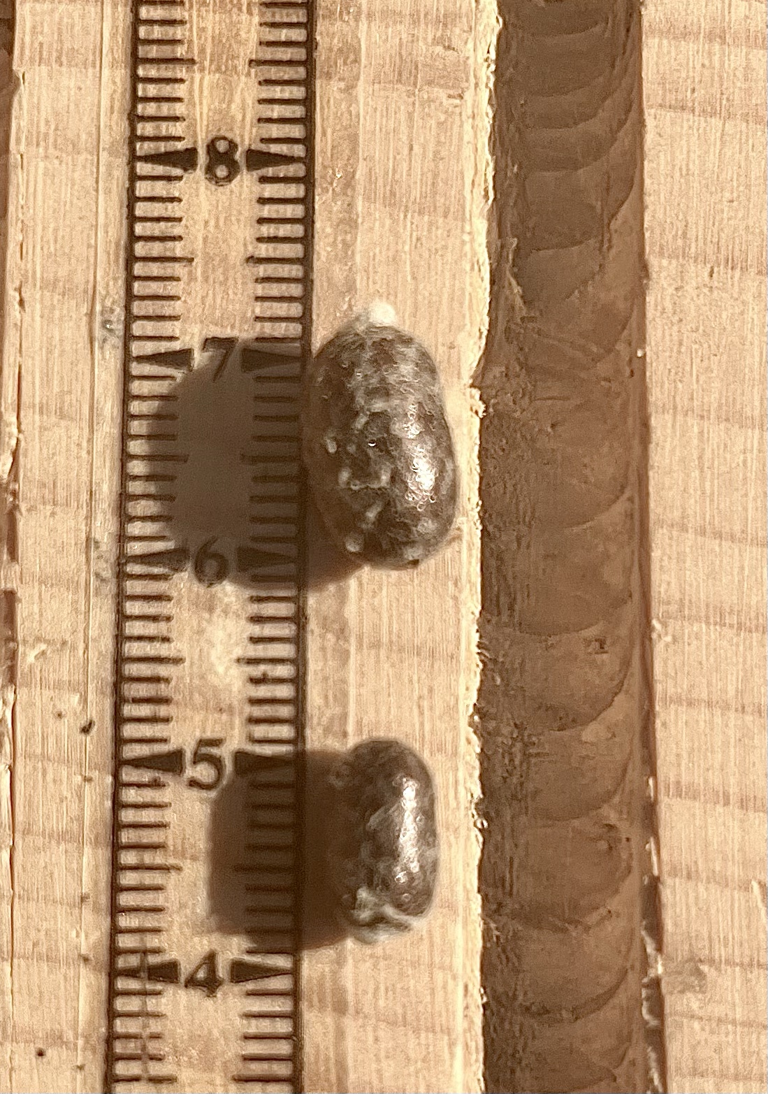 A whole row of cocoons has been killed by the larvae of the Carpet Beetle. They manage to break the cocoon, get inside and feed on the larva.