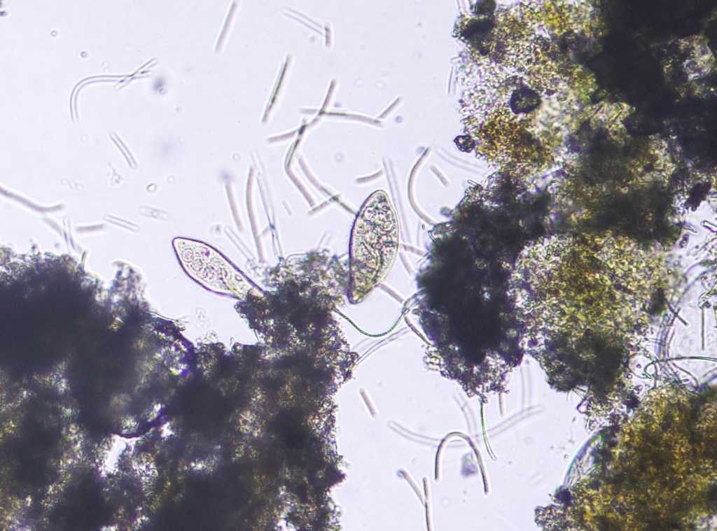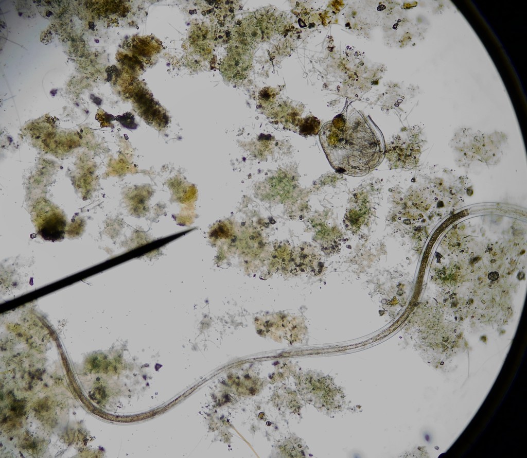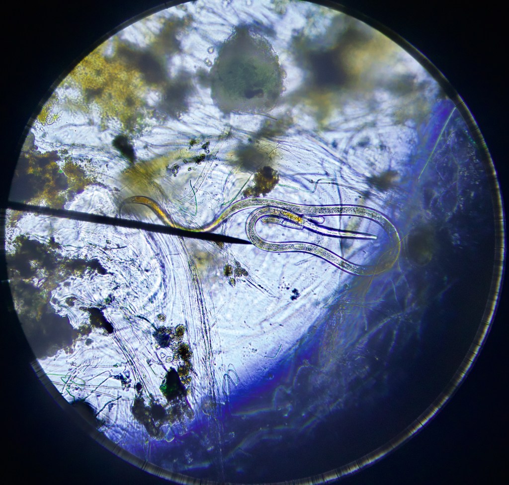 Not many, but rather large nematode worms. I didn’t see them in all samples I collected from the jar but the ones I did manage to catch were huge (several cm) compared to the ones I saw in the beginning (max 1cm).