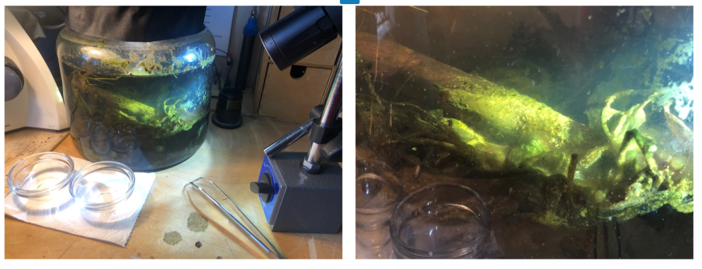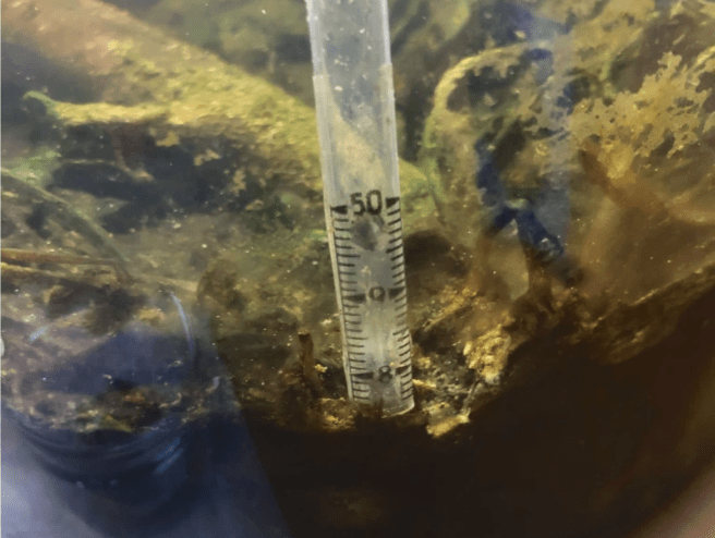 This is an example of a sample that I collected, with some water, stuff from the side of the walls, from the surface of the water, from the bottom and from the substrate.