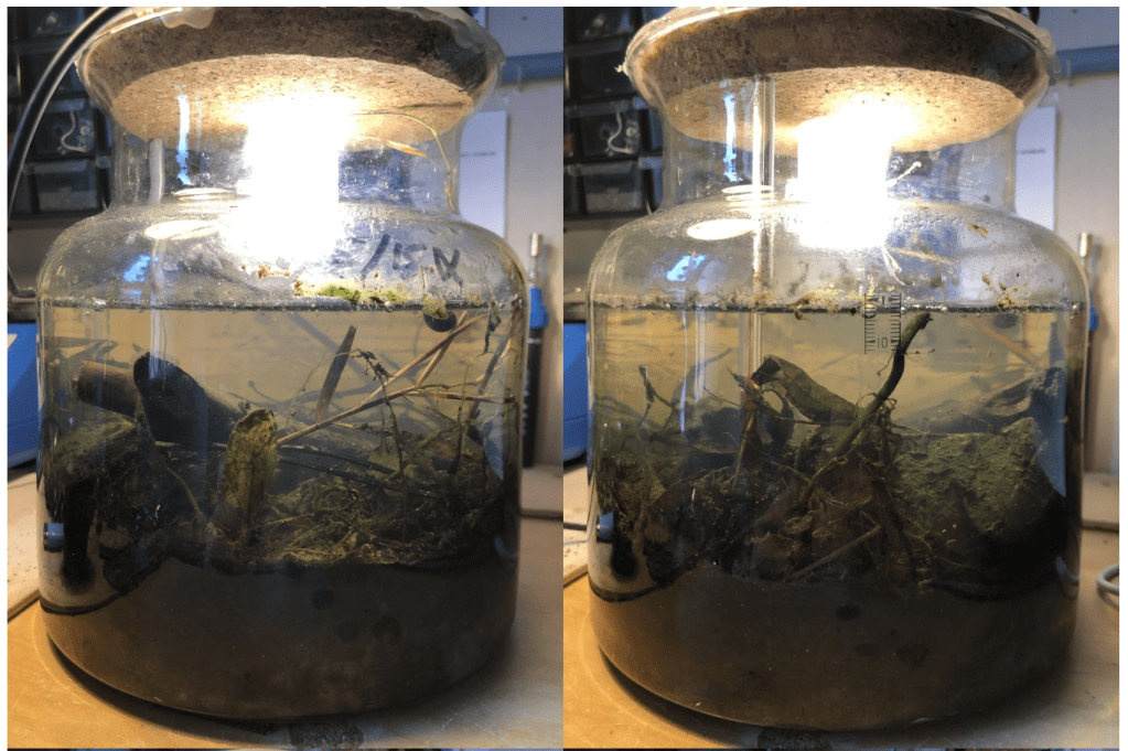 This is a closed ecosystem that has little to no exchanges with the outside environment. Collected September 5th, 2020 from a 20 year old fishing pond (ex-quarry).