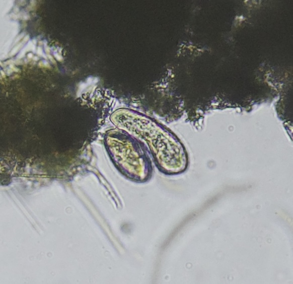 Now this is the interesting bit. I found this pair of paramecia that was twirling around in the same place, not moving about like their friends, and that seemed to be tied together in some way: