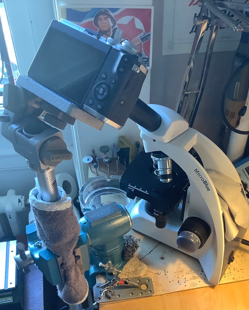 The camera records afocally through the microscope