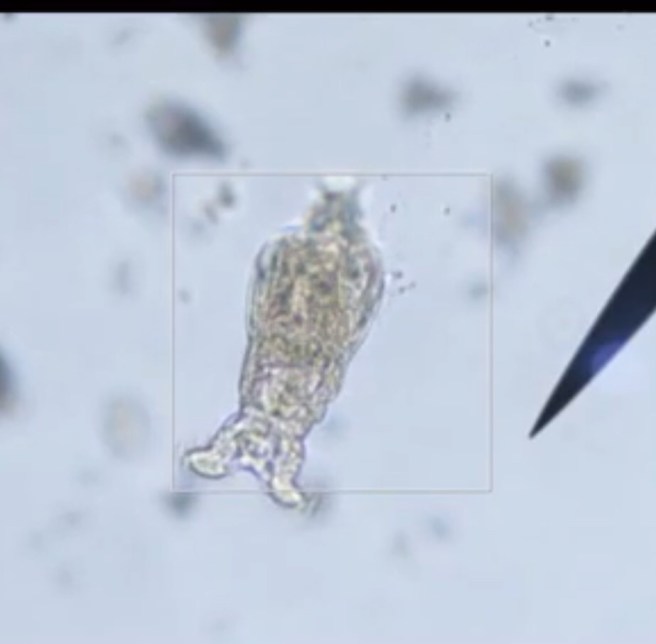 They move their cilia in a rotating pattern to create a stream of water directed to their mouths. Larger individuals can be up to 1mm in length, but the vast majority are just below what the eye can see (0.1 to 0.5mm). Can be revived after drying.